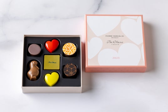 本年は、オークラ東京オリジナルのチョコレート「トリュフショコラ・オ・ロム」「アマンド ショコラ キャラメリゼ」の 2種類を新たにご用意いたしました。シェフパティシエの青森昌之が手掛けた本商品は、カカオやアーモンドなどの素材にこだわり、一つひとつ手作りで丁寧に仕上げており、大切な方への贈り物や自分へのご褒美はもちろん、日頃お世話になっている方へのプレゼントにも最適です。毎年ご好評をいただいているピエール マルコリーニとのコラボレーションによるオリジナルアソートギフト「セレクション Okura ed.2025」は、オークラ東京オリジナルの限定フレーバー「マッチャ ホワイト」をはじめ、ピエール マルコリーニ創設30周年を記念してリニューアルされた定番シリーズから4種の新作を含む7個入りで発売します。