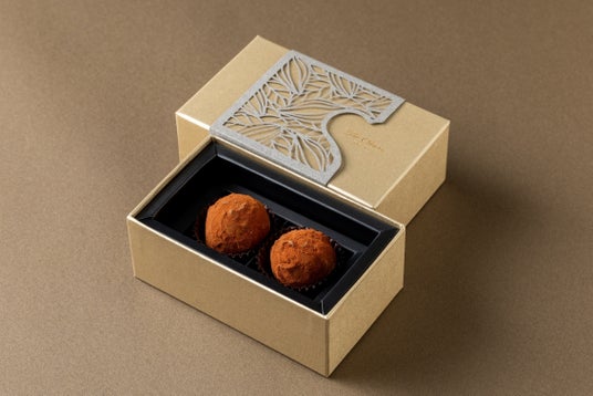 <新商品>トリュフショコラ・オ・ロム ¥2,000/2個入マルティニーク産ラムの中でも特に香り高く、高い人気を誇るブランド「クレマン」の15年ものを使用し、カカオ66%のチョコレートと組み合わせました。口に入れた瞬間にラム酒の芳醇な香りに包まれ、そのあとにチョコレートのほろ苦さが広がります。なめらかな口どけと、完成された大人の味わいを ご堪能いただけます。