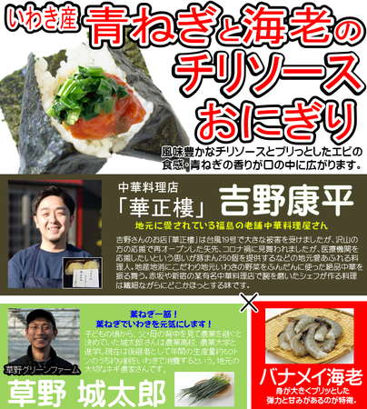 1.吉野シェフ監修「いわき産青ねぎと海老のチリソースおにぎり」