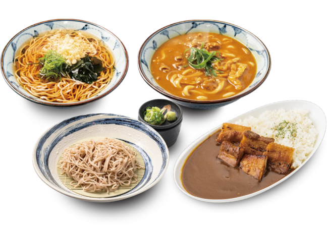 東向日店では、若菜そばコラボ店舗ならではのカレーやそば、うどんに各種セットメニューもご用意、幅広いお客様に対応しています。