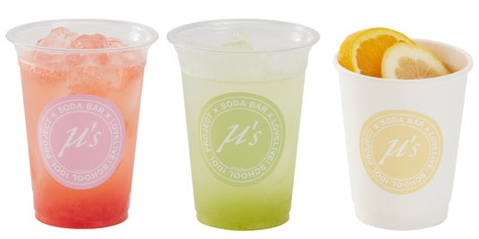 期間中 SODA BAR横浜では、“ラブライブ!”に登場するスクールアイドルグループ「μ's」メンバー9人をイメージしたボトルドンリンクと「μ's」内のユニット「Printemps(プランタン)」「lily white(リリーホワイト)」「BiBi(ビビ)」をイメージしたカップドリンクを発売いたします。今回カップドリンクは、内容を冬メニューにバージョンアップしてお届けいたします。