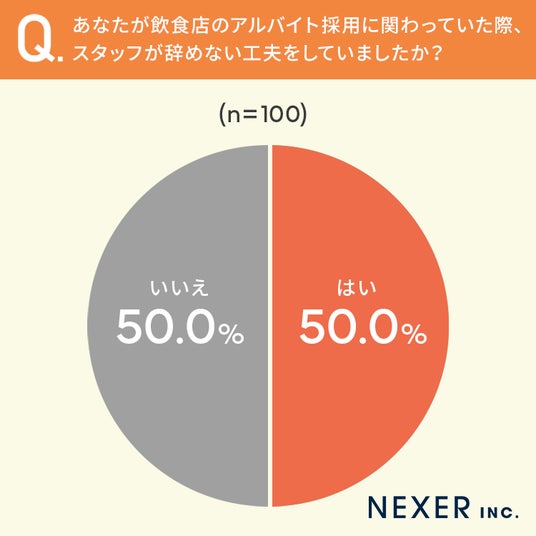 さらに自分が飲食店のアルバイト採用に関わっていた際、スタッフが辞めない工夫をしていたか調査しました。
