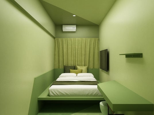 客室は全48室、客室ごとにカラーの異なる8タイプ。壁や床、椅子などがルームカラーそれぞれのコンセプトカラーに染まっており、お好きなカラーに囲まれた宿泊をお楽しみいただけます。