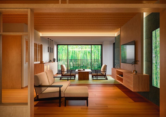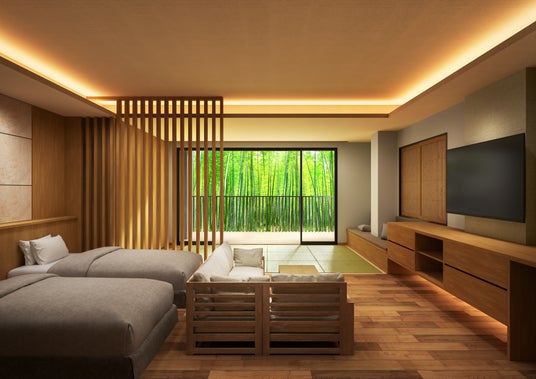 今回新設されたリバーサイドの8室は、それぞれが異なる雰囲気を持つ、個性豊かなデザインが特徴です。全ての客室には専用の露天風呂が完備されており、贅沢なひとときをお過ごしいただけます。
