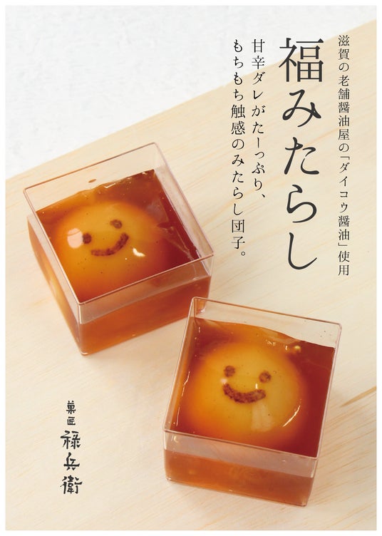滋賀県長浜市に拠点を置き、素材の選定から製造までこだわり抜いた和菓子を提供する1926年(大正15年)創業の老舗和菓子ブランドです。伝統を現代風にアレンジした和菓子が人気で、看板商品「福みたらし」は、滋賀産米粉のもちもち団子に老舗「ダイコウ醤油」の甘辛いタレが絡んだ逸品です。焼印のにっこり笑顔が特徴で、冷やしても美味しく召し上がれます。