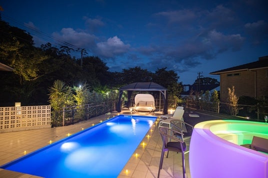 Poolen ITOは閑静な別荘地に佇む贅沢な隠れ家空間で、”プールで暮らす”という非日常体験をご提供します。プールは温水設備付き、プールサイドにはデイベッドやパラソルヒーターを完備しており、一日中快適にお過ごしいただけます。