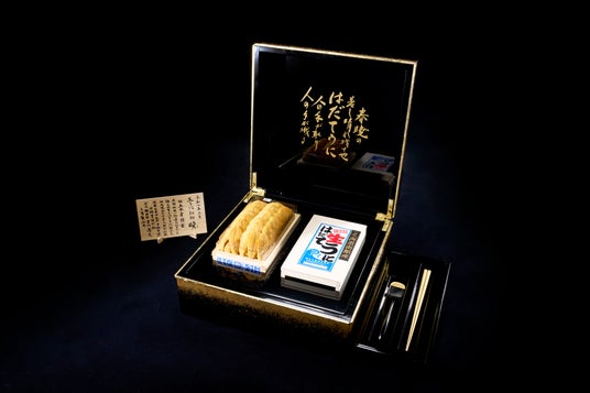 この箱は漆琳堂による特別あつらえで、現代の宝珠である『はだての生うに』を納める玉手箱となっています。