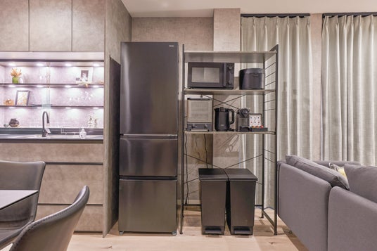 冷蔵庫や電子レンジ、トースターなどの日常的な家電に加えて調理器具も充実。