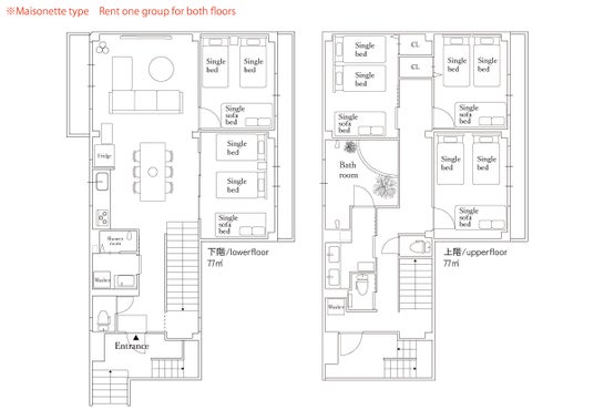 (全寝室:シングルベッド2台,ソファベッド1台)