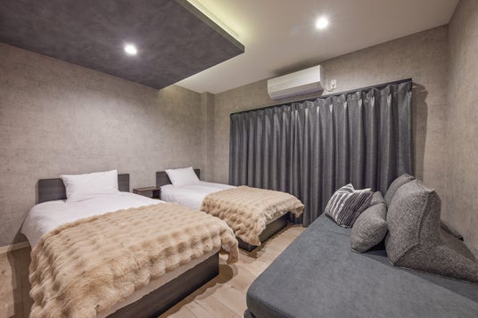 寝室は合計で5部屋あり、備え付けのソファベッドも使用すれば最大15名までの宿泊が可能です。家族や友人など大人数でのグループ旅行でもプライバシーが保てるように個室を多めに用意しました。各部屋にソファを1台ずつ用意しているので、お部屋でもゆっくりリラックスしてお過ごしいただけます。