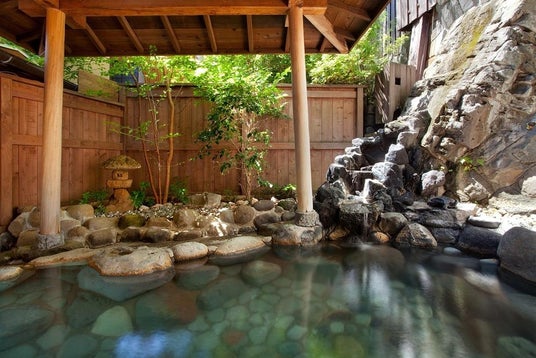豊富な湯量(毎分300リットル)を誇る2本の自家源泉かけ流しの湯は、温泉大浴場や露天風呂、開放的なジェットバス付きの露天風呂と、半露天の岩造り計4ヶ所の貸し切り風呂(45分2,000円)などでご堪能いただけます。