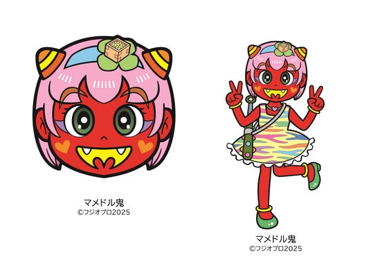 「世界中にハッピーが訪れますように♪」という願いを込め、みんなを笑顔にしてしまう、かわいくポップな「マメドル鬼」を採用しました。