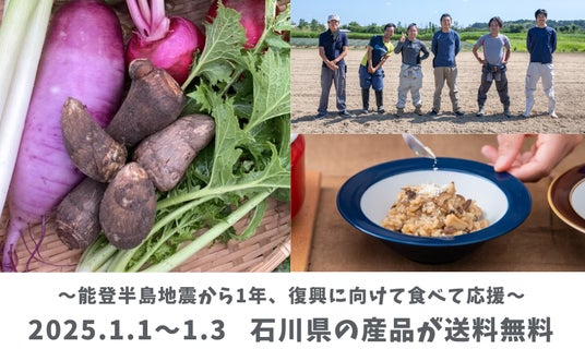 「都市と地方をかきまぜる」をミッションとする株式会社雨風太陽(本社:岩手県花巻市、代表取締役社長:高橋 博之、証券コード:5616、以下「当社」)は令和6年能登半島地震から1年が経過した2025年1月1日より、石川県の商品の送料無料施策を開始します。被災地での「生業の再建」に貢献し、食を通した関係人口創出により創造的復興に寄与します。また、代表高橋と当社の支援実績をまとめたnoteも公開しました。