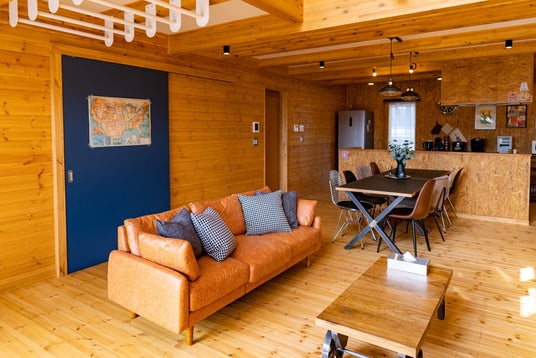 室内はロッジ独特の木の温かさのある内装になっています。素足で歩くたびに感じる無垢の木の質感にゆったりした安らぎを感じていただけます。