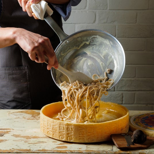 Cheese Tavern CASCINAの炎のチーズパスタはワンオーダーずつお客様の目の前で仕上げを行う料理です。