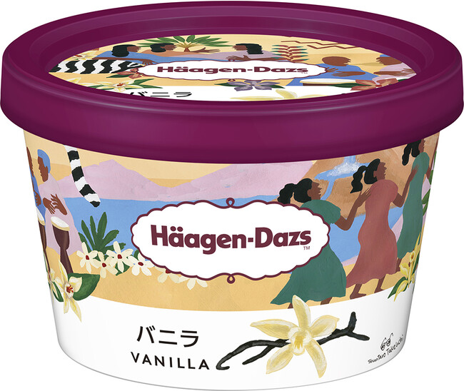 日本のカルチャーシーンで活躍するアーティストがデザインした数量限定のパッケージ。バニラの育った自然と、甘い香りにインスパイアされ、そこで暮らす人々と音楽を奏で、友達との会話を楽しみながらハーゲンダッツ『バニラ』の食べごろを待つ至福のひと時を表現しました。