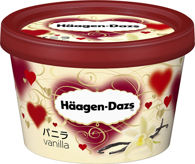 『バニラ』を食べたときのユニークな体験や価値を表現したデザイン。ミルクをはじめとしたハーゲンダッツの原料へのこだわりを表現する白色を組み合わせ、フタとロゴにはコーポレートカラーであるバーガンディーレッドを用いています。