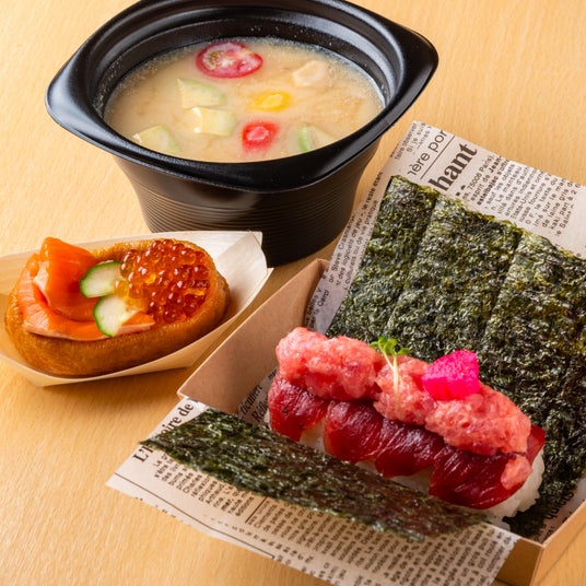 このほか、まぐろやサーモンをたっぷり”のっけ”たのっけ寿司や、豆乳と酒粕を使用した優しい味わいのみそ汁、ほたてを丸々1個入れたボリューム満点のチャウダーなど、豊富なラインナップをご用意しております。