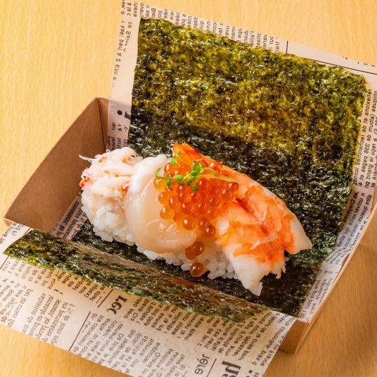 すしドッグは、しゃりと海鮮などの具材をのりで包んで食べる新しいスタイルのお寿司です。