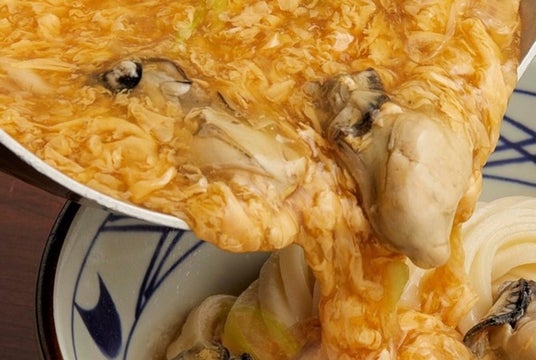 うどんは、釜から直接器に盛り付ける釜抜き麺でご提供いたします。水で締めない麺は、表面が毛羽だっており、だしがよくからみます。小麦がふわっと香る、打ち立て、茹でたてのうどんに、あつあつの玉子あんかけをたっぷりからめて、濃厚な牡蠣の旨みとともにご堪能ください。
