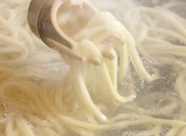 技と感性を磨いた「麺職人たち」が、100%国産の小麦粉を毎日打ち、その場で麺を切って、茹でて、つくりたてをお客さまに提供しているからこそ、独自のもちもちの食感とおいしさを守り続けることができているのです。