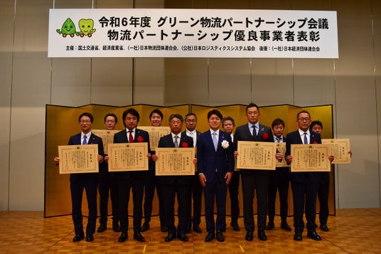 アース製薬株式会社(代表取締役社長CEO:川端克宜)は、大塚倉庫株式会社(代表取締役社長:濱長一彦)、加藤産業株式会社(代表取締役社長執行役員:加藤和弥)、岐阜プラスチック工業株式会社(代表取締役社長:大松栄太)、株式会社久原本家グループ本社(代表取締役社長:河邉哲司)、株式会社J-オイルミルズ(代表取締役社長執行役員CEO:佐藤達也)、鈴与株式会社(代表取締役社長:鈴木健一郎)、太陽化学株式会社(代表取締役社長:山崎長宏)、株式会社Mizkan Logitec(代表取締役社長:古澤朗)、ライオン株式会社(代表取締役兼社長執行役員:竹森征之)、株式会社ロジパルエクスプレス(代表取締役社長:山本泰治)の10社(五十音順・アース製薬含め計11社)とともに、2024年12月23日(月)、砂防会館(東京都千代田区)にて開催された「令和6年度 グリーン物流パートナーシップ 会議物流パートナーシップ優良事業者表彰」にて、最高位となる国土交通大臣表彰を共同受賞しました。
