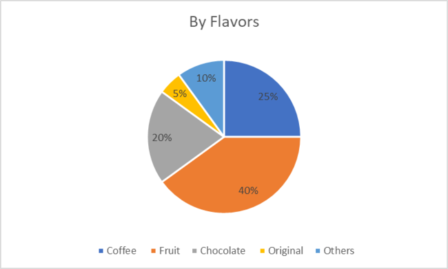 回答: 調査の結果、バブルティーのフレーバーは、コーヒー (25%)、フルーツ (40%)、チョコレート (20%)、オリジナル (5%)、その他 (10%) であることがわかりました。さまざまなフレーバーの中で、フルーツ フレーバーは、他のフレーバーと比較して栄養価が高く、お茶ベースのフルーティー飲料の人気が高く、消費者の嗜好が高いため、より人気があります。ライチ、マンゴー、パッション フルーツ、ピーチ、プラム、ストロベリー、アボカド、バナナ、グレープ、キウイ、レモンなどのフレーバーが含まれています。