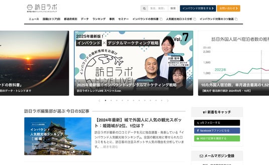 訪日ラボは、インバウンド担当者・訪日マーケティング担当者向けに訪日外国人に関するニュースやデータを毎日配信する、業界最大級のインバウンドビジネスメディアです。