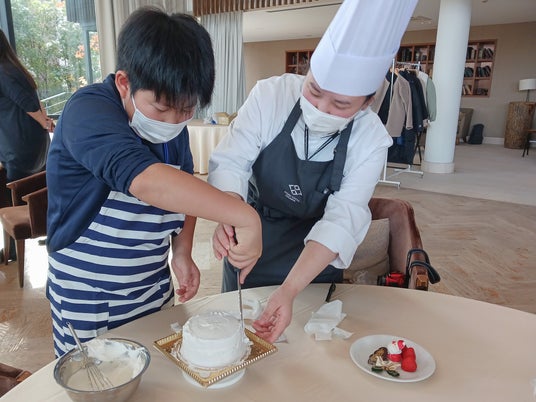 「普段作る側はお客さまの顔を見る機会も少ないです。「作る」だけではなく、受け取ってくださる方の顔を見る体験をしてほしいと思っているので、今回このようなイベントを実施できてよかったです。結婚式場でケーキ作りを体験することは、生徒たちにとっても初めてのことでした。」