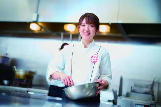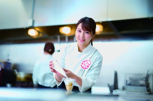 パティシエ 藤原 美幸さん料理上手な母を見て育ち、パティシエを目指す。専門学校では、スイーツだけではなく、料理全般を学ぶため製菓科と調理科の両方を卒業し、調理師免許を持つ。卒業後は、カフェやフレンチのお店でスイーツの開発を担当し、新規オープンしたタルト専門店では、店長兼パティシエとして季節ごとに新作スイーツを考案。自らの商品をより多くの方に食べてもらいたいという想いからスシローへ入社。