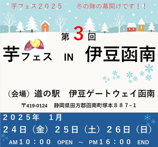 第3回芋フェスIN伊豆ゲートウェイ函南の開催が2025年1月24日~26日と発表された。東海地方で20万人以上を動員してるこのイベントであるが、前回は生憎の台風の影響で規模を縮小して開催されたのも記憶に新しいところ。