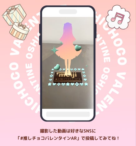 - 再生ボタンを押すとARスタート!撮影した動画は好きなSNSに、 #推しチョコバレンタインAR をつけてシェアしよう!