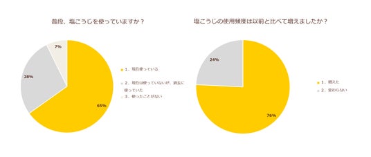 今回のモニターを対象としたアンケートからも、日常での使用率の高さや、生塩糀パウダーをはじめとする「塩こうじ」の使用頻度の高まりが明らかとなり、塩こうじが家庭に浸透しつつあることがうかがえます。
