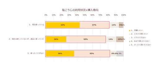 また、今回モニター参加者のうち、過去塩こうじを使っていたが使わなくなってしまった人、そもそも塩こうじを使ったことがない人それぞれにおいて、約8割の人が、今後常備意向を示す結果となりました。「塩胡椒」といった誰にもなじみのある調味料を切り口として「塩こうじ」を体験することで、「塩こうじ」を気軽に取り入れやすくなるといった、今後の利用者拡大に向けた可能性を確認することができました。