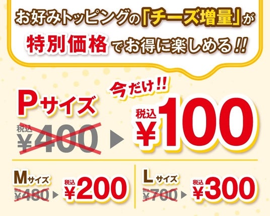 内容: 追加トッピング「チーズ」を特別価格にて提供