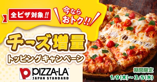 株式会社フォーシーズ(本社:東京都港区南青山 代表取締役会長兼CEO:淺野幸子)が展開する宅配ピザ「PIZZA-LA」は2025年1月9日(木)から、追加トッピング「チーズ」を特別価格で提供するキャンペーンを実施いたします。