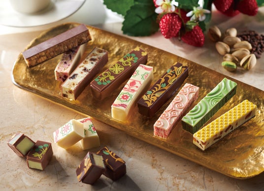 ベルギー産クーベルチュール(製菓材料用チョコレート)と厳選素材を組み合わせた9種類のバトン形のチョコレート。