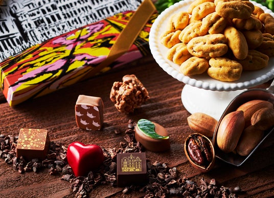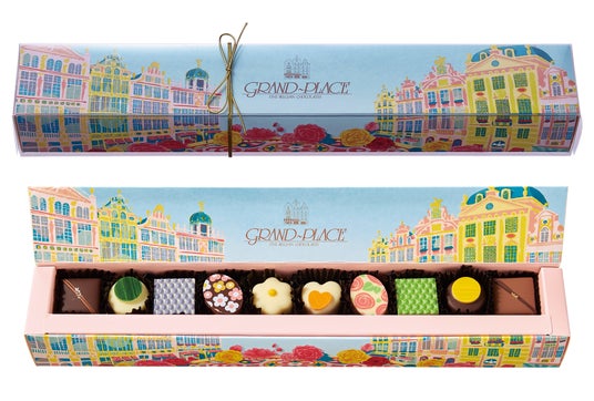 パッケージは、ベルギー ブリュッセルのグランプラス広場の華やかなフラワーカーペットをイメージ。キュートなショコラに花を添えます。