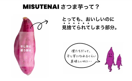 今回の活用食材である「MISUTENAIさつまいも」とは、干し芋を製造する段階で発生してしまう、さつまいもの残渣(ざんさ)を活用した商品です。