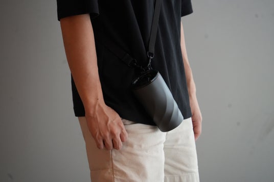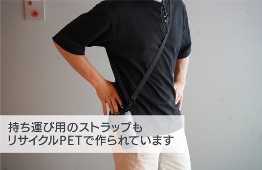 また、本体185g(フタ込みで240g)という軽さと、ねじ込み式で密閉性の高い蓋を採用することで漏れの心配なくカバン等に入れることが出来るため、携帯性にも優れ、付属の長さ調節が出来るストラップを装着することでハンズフリーとなり、作業中も好きな時に飲み物を飲むことが出来ます。