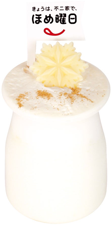 ミルキーシャンテリーを重ね、上面に金粉と雪の結晶チョコを飾った真っ白なミルキープリンと、ストロベリーシャンテリーを重ね、銀粉とSmile Switchチョコを飾った苺ミルキープリンの2種が登場。「ほめ曜日」フラッグを立てたご褒美プリンです。