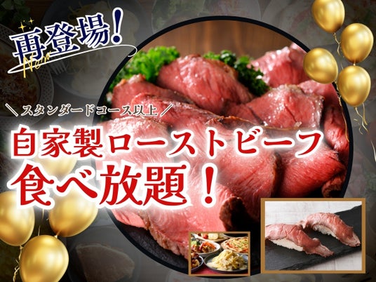 この度、2025年1月9日(木)より、スタンダードコース以上にて『自家製ローストビーフ』と『ローストビーフ寿司』が再登場いたします!