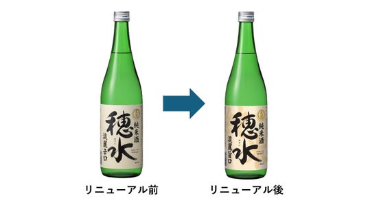 「純米酒 穂水720ml瓶詰」リニューアル前(左)、リニューアル後(右)