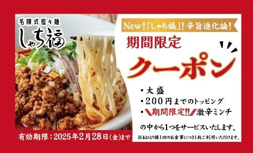 「New!しゃち福!辛旨進化論!」オープンを記念し、2025年1月17日(金)~2025年1月31日(金)にご来店いただいたお客様へ期間限定クーポンをプレゼント!