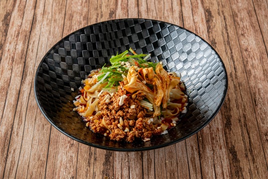 痺れがクセになる「汁なし担々麺」名古屋名物の「きしめん」をイメージした平打ち麺に絡む胡麻だれの風味と山椒のしびれがクセになる一杯。