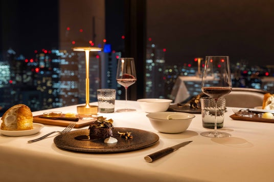 「Restaurant Bellustar」は、地上200mからの絶景が眼下に広がる圧倒的な空間を誇る天空のダイニング。「素材で旅するレストラン」をコンセプトに、日本各地の素材にこだわり、フレンチの伝統と文化を守りながら、常に進化する食の体験へと誘います。プライベートな空間で煌めく都会の夜景を眺めながらお召し上がりいただくディナーは、日本各地の旬の素材を取り入れた極上のモダンフレンチのコース。乾杯のシャンパンから始まるペアリングワインとのマリアージュをご堪能いただけます。