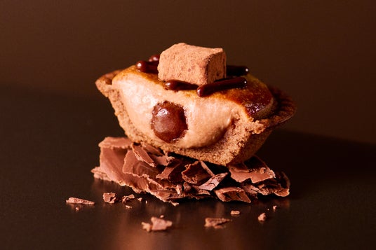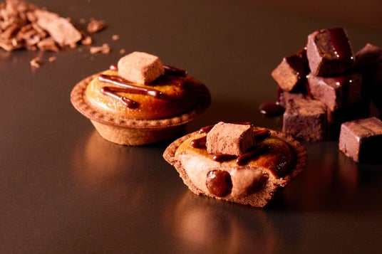 カカオ分60%のチョコレートを使用したマイルドな味わいのチョコレートチーズタルトにカスタードを混ぜたチョコレート味のクリームをムースの中にたっぷり絞りました。トッピングには生ショコラを乗せ、食べ進める度に濃厚なチョコ感を楽しめる贅沢なチーズタルトです。