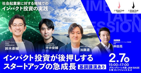 この度、調査の結果明らかとなったポイントを整理し、国内他地域でインパクト投資の実践検討をする投資家・金融期間・事業会社等へ周知する広報イベントを開催します。なお、本イベントの開催は、近畿地域では近畿経済産業局、九州地域では九州経済産業局との共催とし、各地域のスタートアップエコシステムへの本調査結果の活用を検討し、地域におけるインパクト投資促進に向けた機運を醸成していきます。