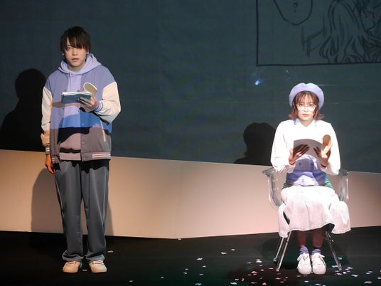 本編の前に、前説として始まったのは「花時雨ラジオ・出張版スペシャル!」。マリアと道留を演じる山田麻莉奈さんと千葉瑞己さんがテンション高く、楽しく進行しつつも、劇場でのマナーを説明。なぜ前説にラジオが? と思わされるものの、2人のレアなやりとりに、思わず聞き入ってしまいます。