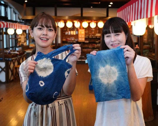 縁日あそびと伝統文化体験「阿波の國」では、藍染めを滞在中にお楽しみいただけるように藍甕を管理。天然灰汁発酵建て阿波藍染めで、ハンカチ(1,650円~)やコットンバック、Tシャツを染めて、その魅力にふれてはいかがでしょう。その他、大谷焼の絵付け(1,800円~)、阿波手漉き和紙(2,000円)などのプログラムも好評です。